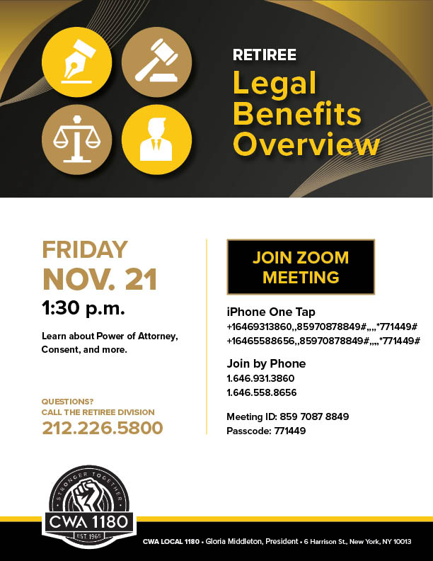 Call the Retiree Division to reserve your spot today: 212.226.5800