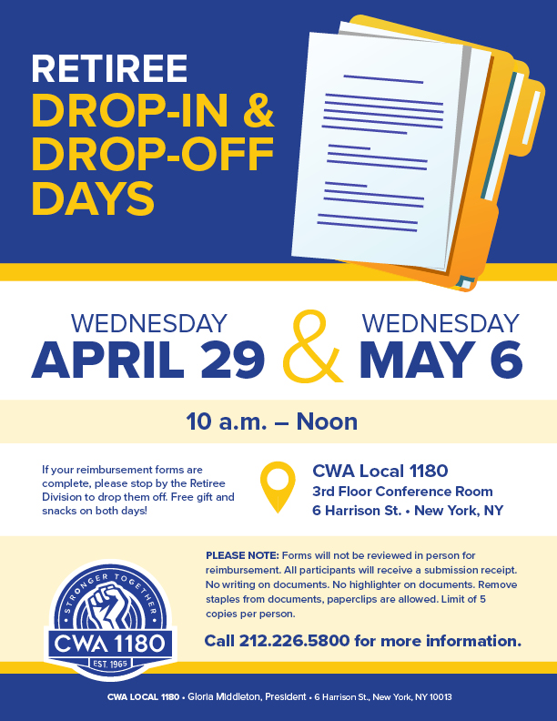 Call the Retiree Division to reserve your spot today: 212.226.5800 |